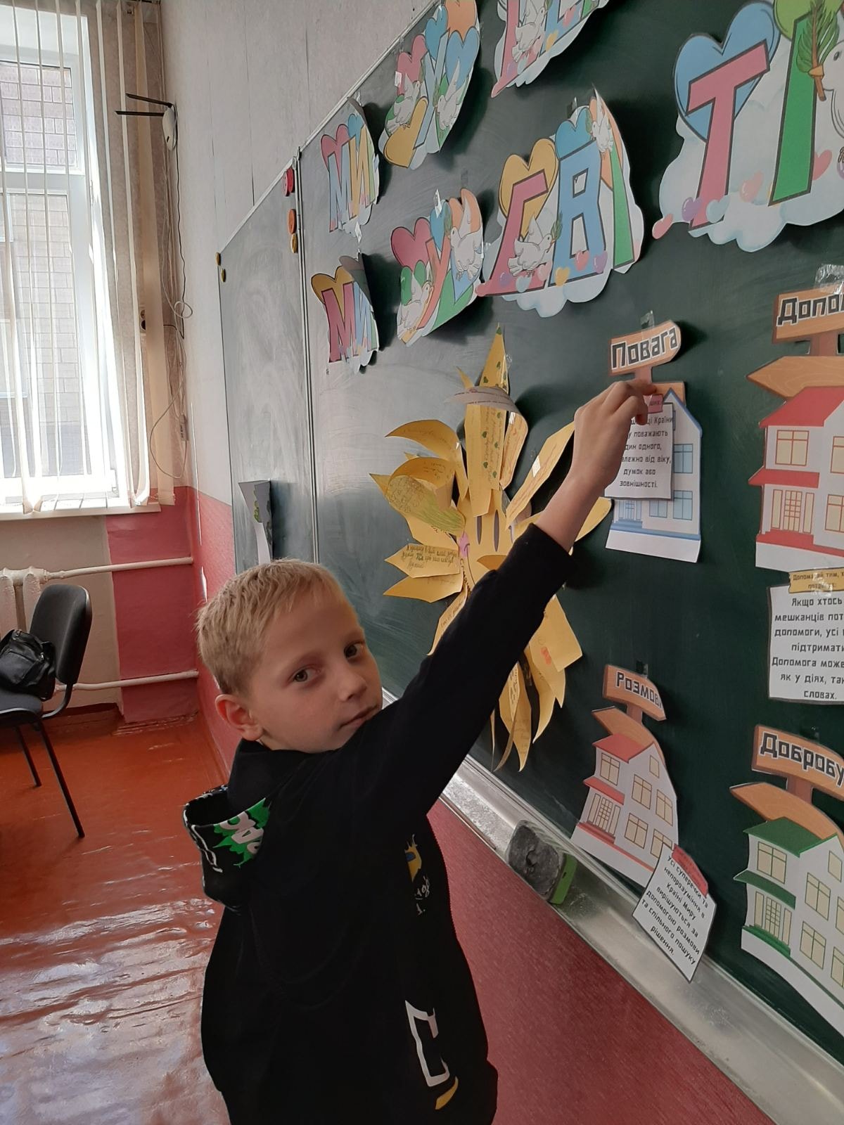 На завершення учні створили колективний проєкт “Країна Миру”, в якому кожен висловив своє бачення гармонії та злагоди у світі.