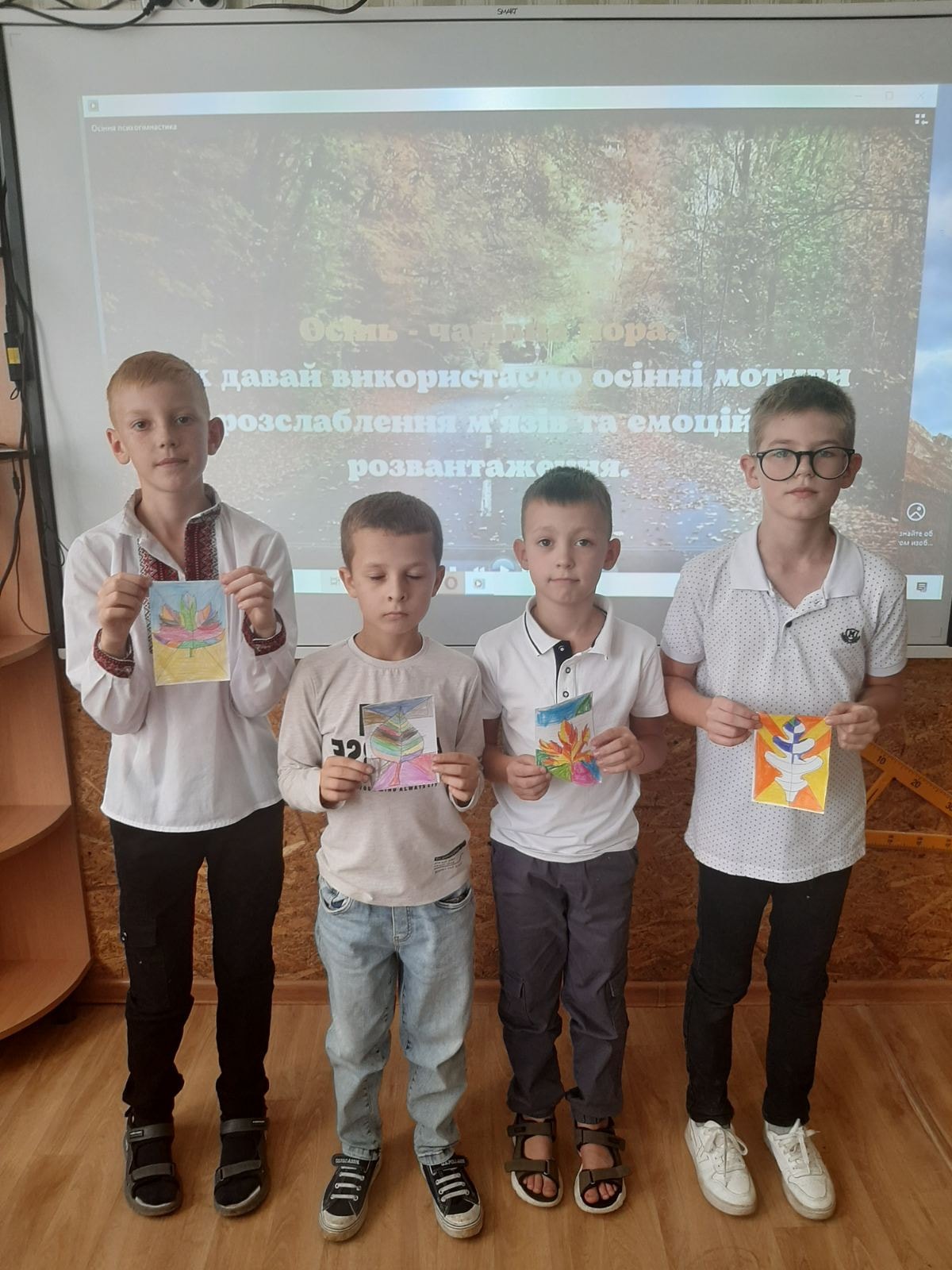 На завершення тренінгу учні взяли участь у творчій активності – розмалюванні мандали “Осінній листочок”. Це було не просто малювання, а процес, що сприяв зняттю емоційної напруги, концентрації уваги та розвитку креативності. Малюнок допоміг дітям відчути себе більш спокійними, врівноваженими та радісними.